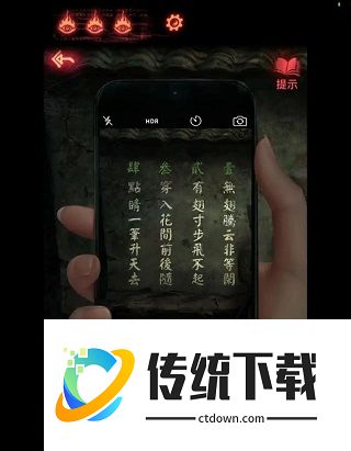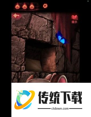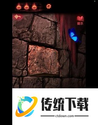 6、点击小人处城墙,用手机照得到一首诗,这首诗是小人处红色箱子的线索,红色箱子密码为(龙,蝴蝶,鱼和龙),从左往右点击次数分别为(3153),获得【石板】,到忌物阁,点侧面第二个门,将【石板】放在里面,进入藏经阁。