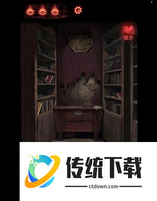 7、进入葬经阁,两个墙面上有三本书(很明显),点开后得到线索:①需要给大门处男童女童供奉玩具,男童供奉刀(老头处右边老头手里拿的那个),女童为能鸣之物;②生辰阴阳;③三大贤的生辰八字,以及坐化物。结合二三,可得室内中间柜子上的密码从上到下为(阳阳阳阴,阳阳阴阳,阴阴阳阳),获得【画像】。