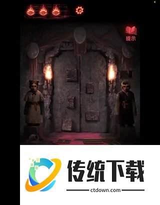 20、在大门处供奉好后拿出手机(此处有个小高能),按照孩童手臂交叉指向的位置一次点击石门上的按钮,要用手机看五。(这里不清楚顺序固不固定所以没出顺序)
