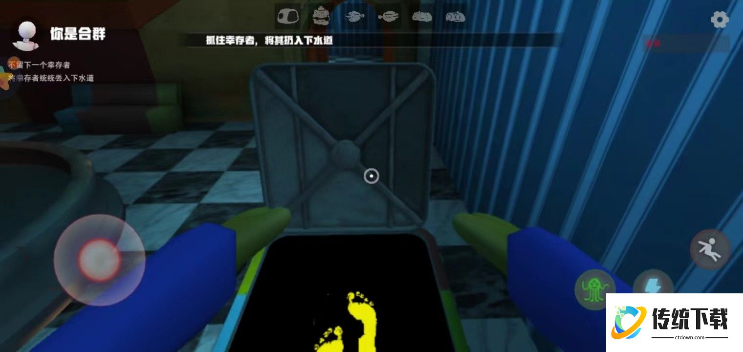 如果是怪物的话,那么你的任务则是阻止幸存者制造更多像你一样的玩具,不留一个幸存者,抓住后将他们通通丢入下水道。