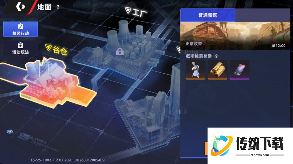 3、然后选择一张地图禁区,点击进入地图;