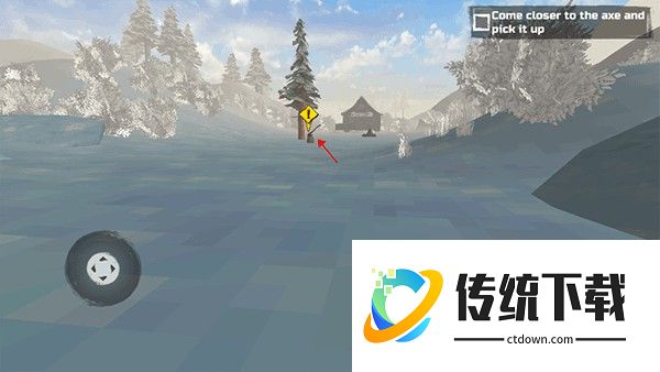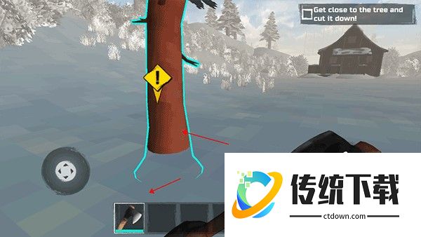 3、拿到之后在下方的道具栏会有斧头,然后靠近树木就会自动砍