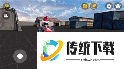 2、进入沙盒世界,通过左右两侧的虚拟键位,控制人物移动、跳跃、蹲下、射击等。