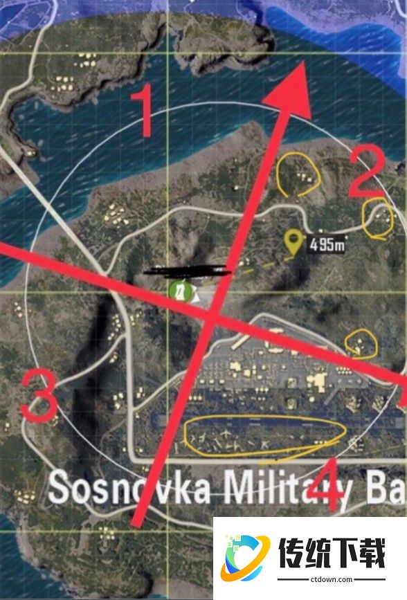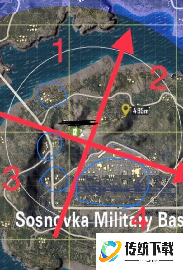 前期无需慌张,重点在于补齐装备。前两次缩圈伤害低,即便在圈外也能轻松跑进来。选择落点时,不建议最早或最后跳伞,以免降落到地图边缘,导致跑圈过于艰难。