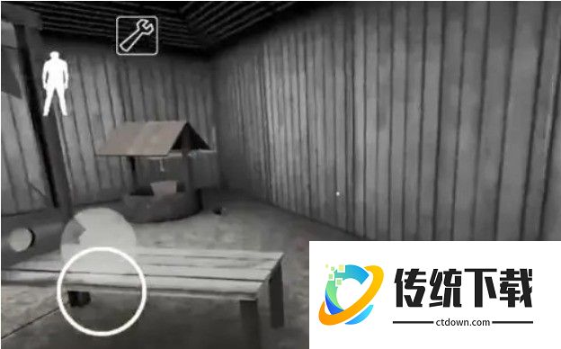 游戏刚开始玩家是在房子的第二层房子里面睡觉,然后醒来以后会发现房门紧闭。玩家自己是不能打开房门的,因此就需要老奶奶的帮助。游戏中起床以后会看到一个桌子,只要将桌子上的花瓶拿起来念动咒语,让后踢到桌子老奶奶就会迅速赶来,在此之前我们要躲在床底下或者柜子里面,以免被恐怖奶奶发现。