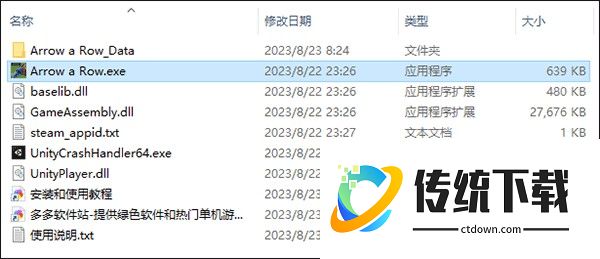 在本站下载并解压好游戏软件后,双击压缩包文件夹中的“Arrow a Row.exe”就可以开始运行程序游戏了。