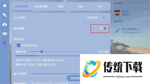 5、如果没看到村民版本的话来到设置里打开版本隔离,重启游戏。