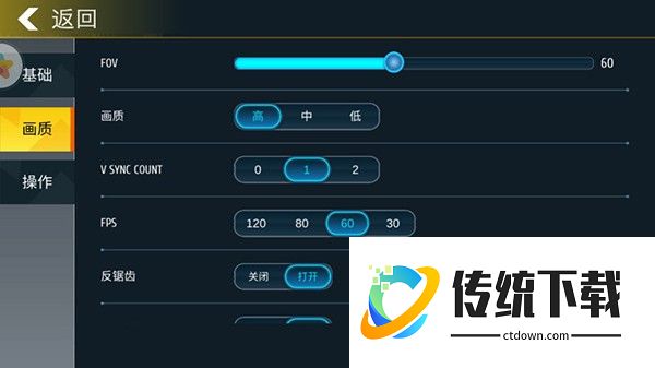 6、在游戏的画质调节中,玩家可以更改游戏的fps、抗锯齿等选项;