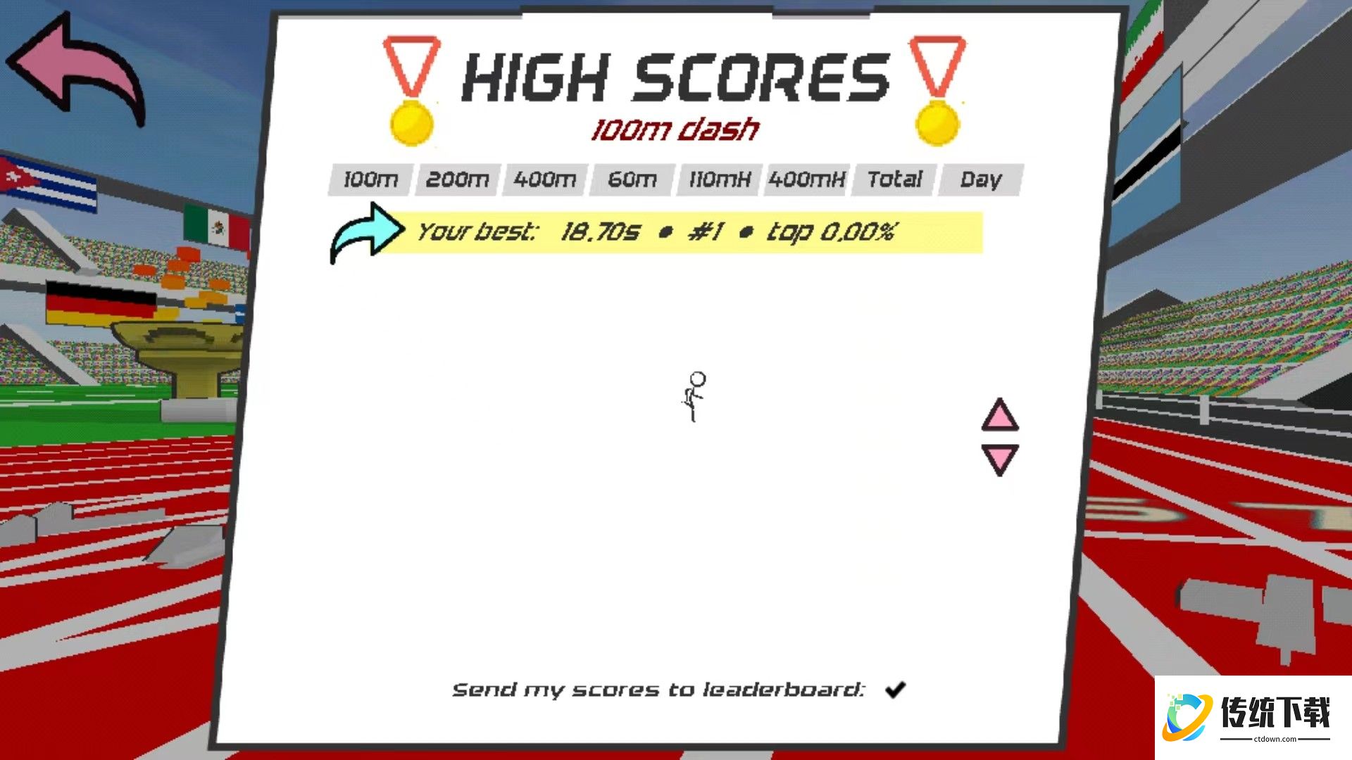 7、在游戏主界面,玩家还可以查看自己的历史成绩记录,对比和刷新最佳成绩。