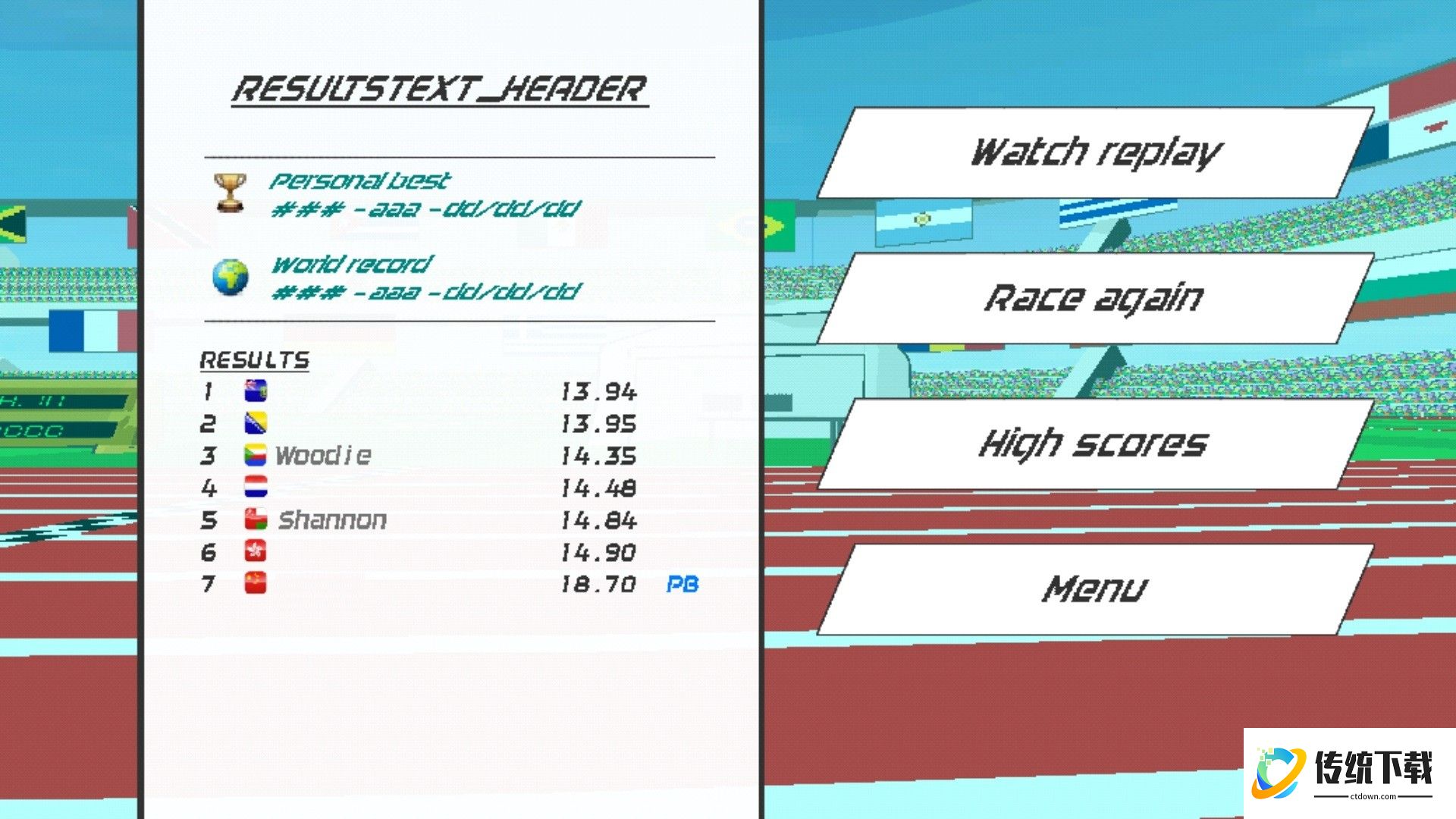 6、当角色冲过终点线后,系统会立即显示最终比赛成绩。