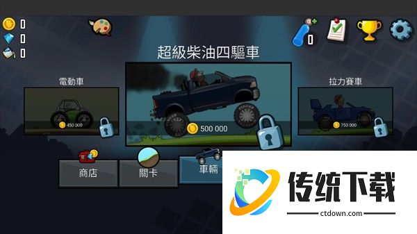 这也是一辆神车,油量多,车身轻,跑探险地图其实挺强的。高级玩法是配合推力器,不过没有满级推力器也不用考虑了。很多赛道用它可以达到令人发指的速度,如果看到排行榜上有些快的离谱的超级柴油车,请千万不要惊讶。