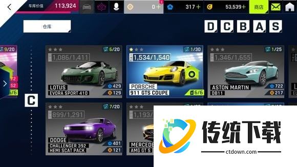 这里我就不标注哪个是国服,哪个是国际服了,大家应该知道。国服的车库分级机制和国际服不同,所以车辆分级和国际服也不也一样。比如在国际服中的d车道奇392在国服变成了c级车,国际服b车911,在国服变成了c车等等,具体我就不多说了,大家看图吧。
