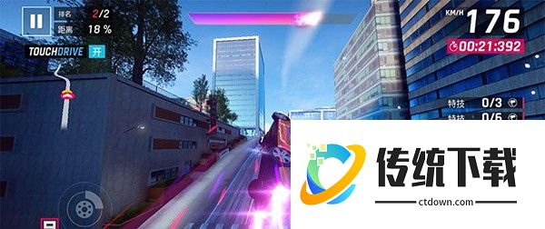 起跳、腾飞!配合氮气爆发的极速,原本高耸入云的楼宇仿佛瞬间矮了下去,狂野飙车9着重用光效表达加速,肾上腺素即刻飙升。