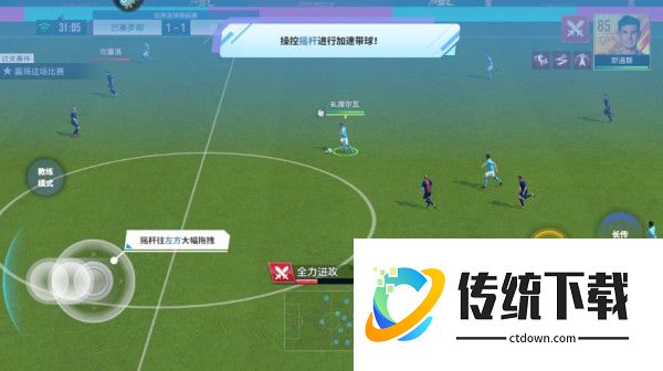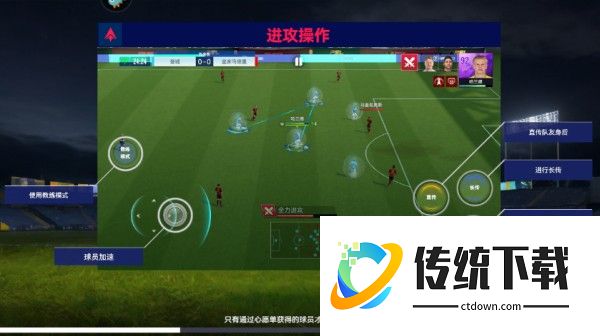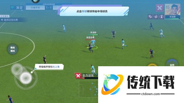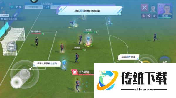 2、传球解析:根据操纵杆控制角色移动,点击传球进行;