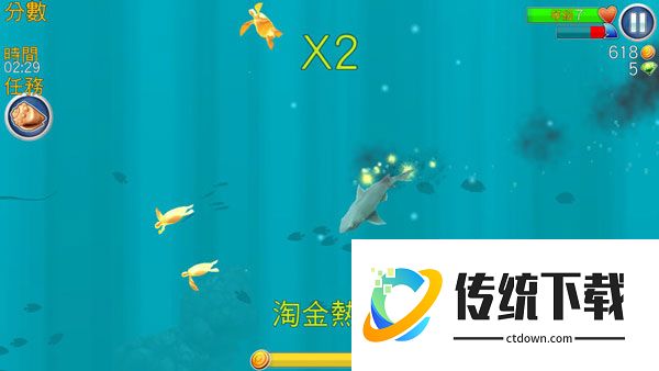 2、注意四周的危险目标很多时候玩家结束游戏并不是鲨鱼饿死,而是碰上了一些可以攻击鲨鱼的鱼类、水母还有潜艇捕鱼船。玩家在游戏的时候要注意四周的环境,尽量的避免被攻击。