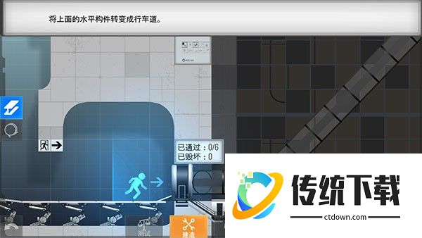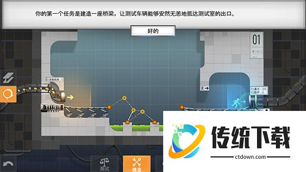 推力。把左侧的桥面铺设到传送门,下方有三角形结构加固,右侧铺设桥面,连接两个点,在桥面下方建造三角形结构加固,即可通关。