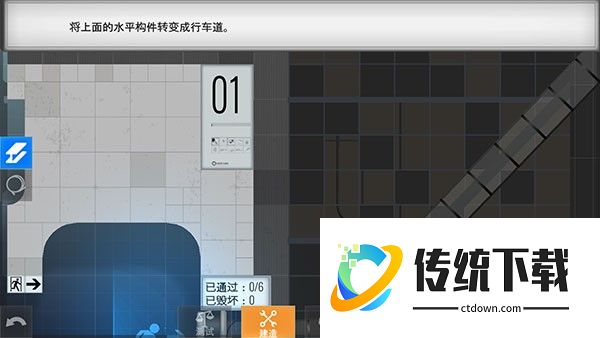 量子隧道。这一关增加了传送门,解锁了新的建筑材料--钢索,在岩浆上方铺设上一层桥面,进行硬化,然后在楼板的建筑点上,用钢索连接桥面的连接点,即可通关。
