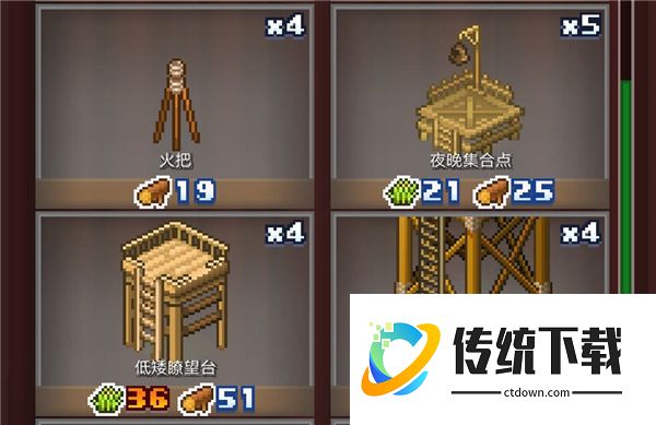 火把:拥有优质的砖块20个以上,铜币135以上