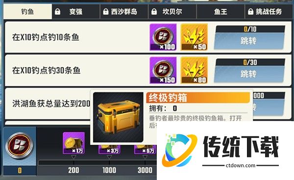 2、等完成新手或主线任务获得第1个橙箱子/橙竿后,将资源给品质较高的橙色鱼竿。