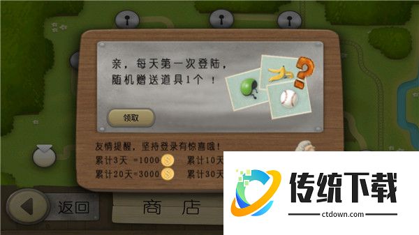 2、每天第一次登陆还会送道具;