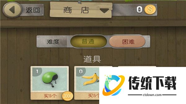 游戏中获得到的金币可以用来购买各式道具,头盔可以抵消头着地受到的前进暂停状态,香蕉皮可以向后扔使后面追逐的人摔倒。