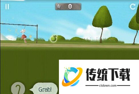 在游戏中老奶奶需要抢在盗贼前拿到苹果,顺便还要在路上赚取购买道具的金币,每次成功跳跃都会获得评价分数。