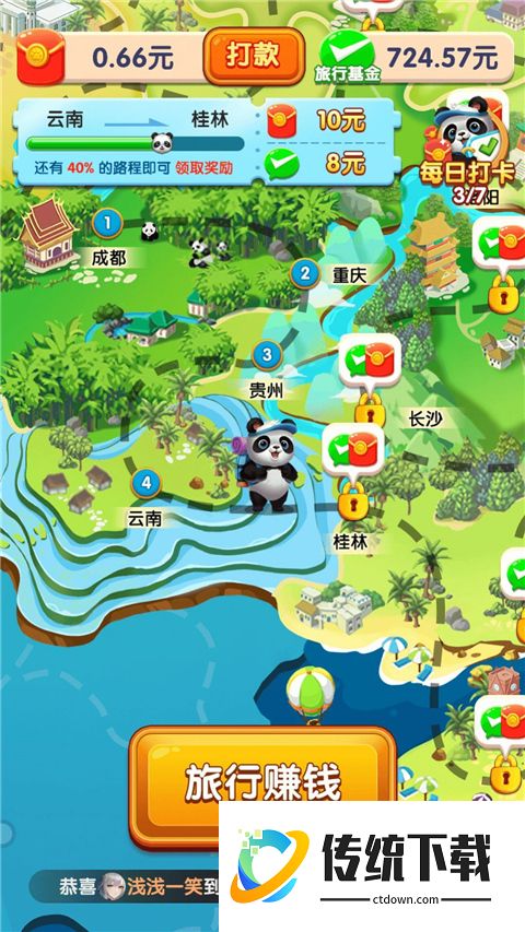 熊猫爱旅行拥有新的游戏机制,让玩家可以更好地探索和参与旅游活动。
