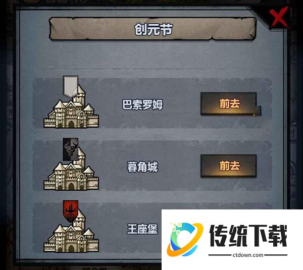 创元节在12月举行,就在亡人节之后,其对应的雕像就是佐亚。我们在修建佐亚神像之后才能参加创元节。创元节在上图中的这三个地方,巴索罗姆、暮角城以及王座堡,如果不小心忘了,可以先去跑法拉。