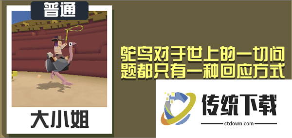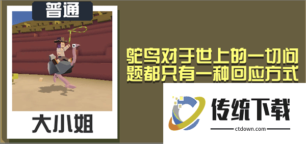 ❺再次就是鸵鸟,因为它的速度可以说是最快的,更加容易撞到东西。但是如果你自己的技术好的话,鸵鸟还是最佳选择,还是我说的那两点,省时间和防止绳索变小。