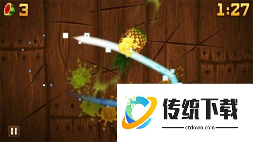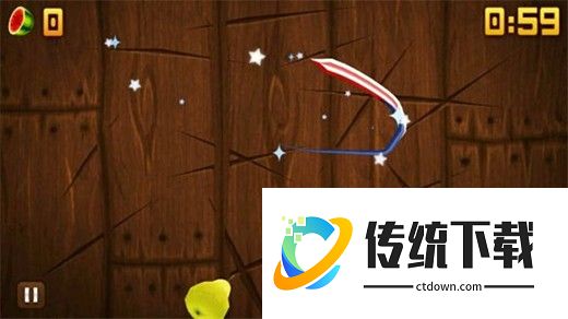特效:在街机和禅境模式中会使水果额外反弹一次(说白了,就是没有切到的水果再重新抛一次。)