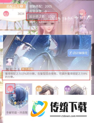 三、设计师之影&印象1、进入对战前,我们可以根据关卡主题,选择一个对应属性设计师之影,设计师之影不仅可以为你的提升你的搭配分数,在战斗阶段中使用,还能额外获得分数奖励。2、如果没有对应属性的设计师之影时,选提一个提升属性相对较高的即可,具体可以仔细看下技能描述和搭配之力列表。3、印象可以理解为设计师之影的装备,也是可以提升最终搭配评分,可以通过印象旅航、印象融合、礼包等方式获得,并通过成长提升、印象深化提升等级和品质。