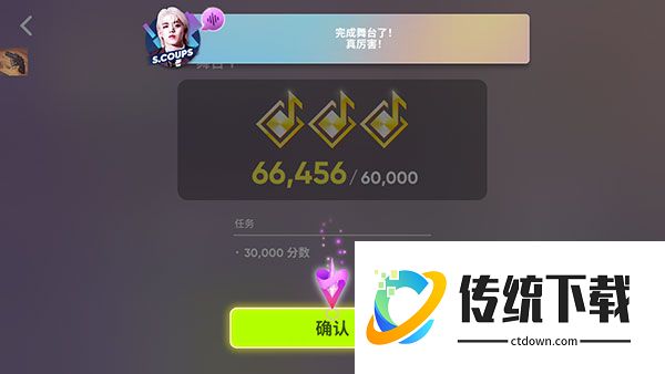 7、结束后会根据玩家的得分情况获得对应的关卡评价和奖励。