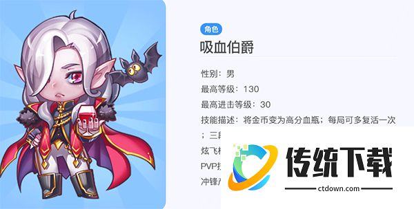 吸血伯爵大家都懂得,妥妥的多人对战霸主之一。搭配白龙马,实力杠杠的,白龙马这款坐骑可以说是当前多人对战中最强悍的一款坐骑,触发技能后不仅能冲锋一阵子,而且吃到金币可以快速累计能量,更快进入冲锋,实力非常不错哟。