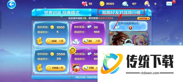 3、选择玩家对战模式进入之后,选择上方的【酷跑好友对战排行榜】进入;