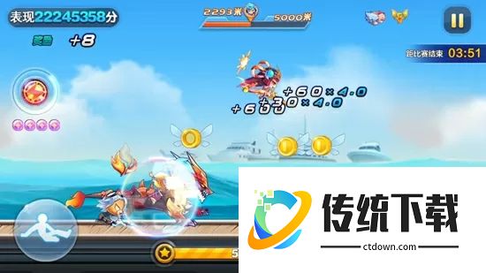 精灵中战争熊器的得分最稳定,是9000米左右爆分的关键。旋转舞娘发动技能后巨化旋转冲锋,并获得磁铁效果。这组搭配,技能在奖励关外障碍多的路段使用即可。旋转舞娘+觉醒赤兔+天照+小丑熊,宝物同上。这套搭配成本较低,万米内爆分,技能也是在奖励关外障碍多的路段使用。若将精灵替换成战争熊器,则能提前1000米左右爆分。注意各短爆搭配都要通过第一次巅峰挑战,且遇到穿越关直接出来。