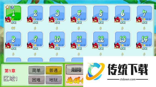 2、游戏将鸟分为1至6个星级,鸟的星级越高,在发射过程中会出现越多分身撞向小猪。