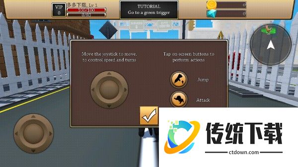 3、完成创建后再次点击“play”后即可进入游戏,我们通过左侧遥感控制移动,右侧按钮控制小狗攻击和跳跃