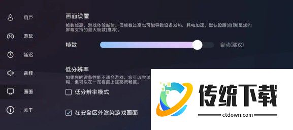 画面设置模块可以帮助调节画面有关的设置,如果设备支持,可以尽量提高游戏的帧数,在视觉和判定上有不错的效果,此外开启低分辨率模式也可以一定程度上提高流畅度。