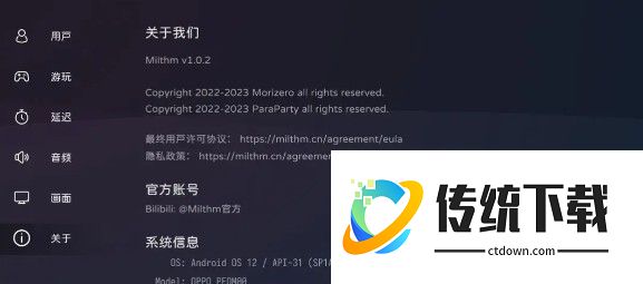 在关于设置界面,玩家可以查看许可协议和隐私政策,以及快速查看系统信息,以便向官方提交BUG。