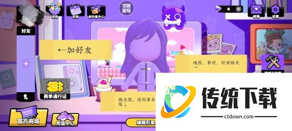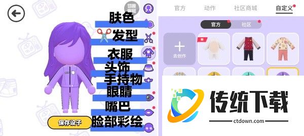 5、〖编辑形象〗→购买官方衣服,动作和玩家自制衣服,以及自定义更换衣服;