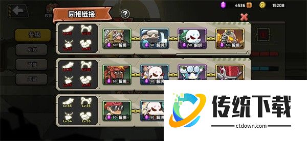 11、英雄同袍链接、这里建议如图下、优先开启 2 条链接、平均把 2 条链接里的 2 个英雄装备升到 51 级开启全部装备属性之后在主升 1 条到 75 即可、因为过图需要。