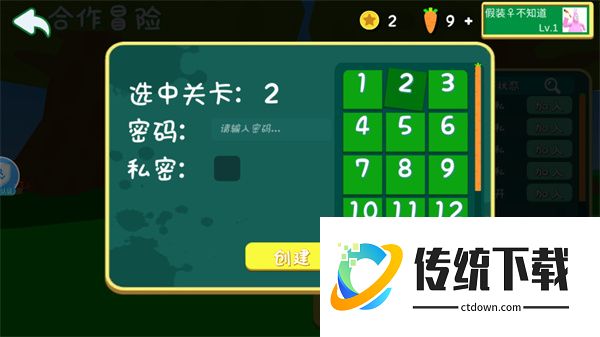 3、当然,也可以直接创建房间,输入密码选择关卡就可以了;