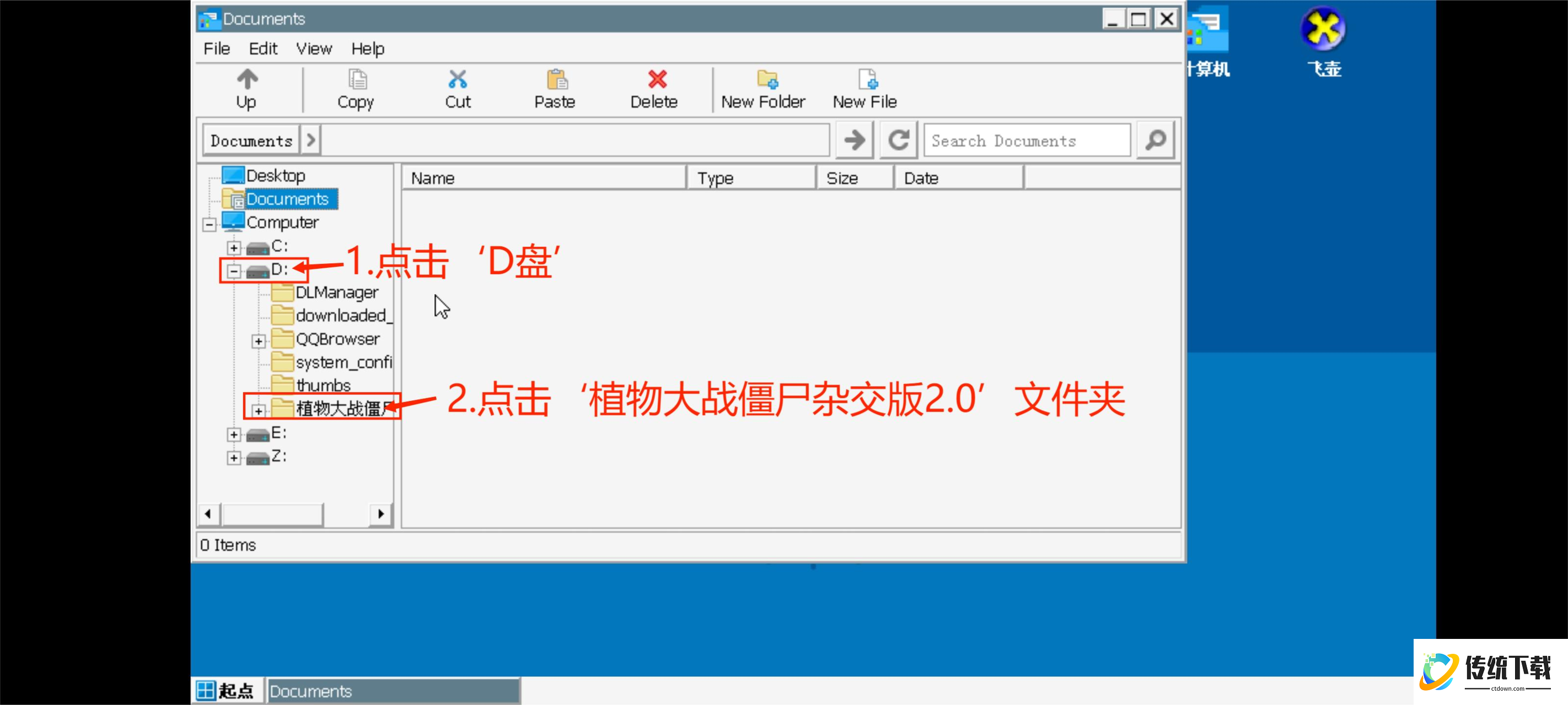 8.先点击‘D盘’,再点击‘植物大战僵尸杂交版’文件夹(滑动屏幕使鼠标移动到相对应的位置后双击)