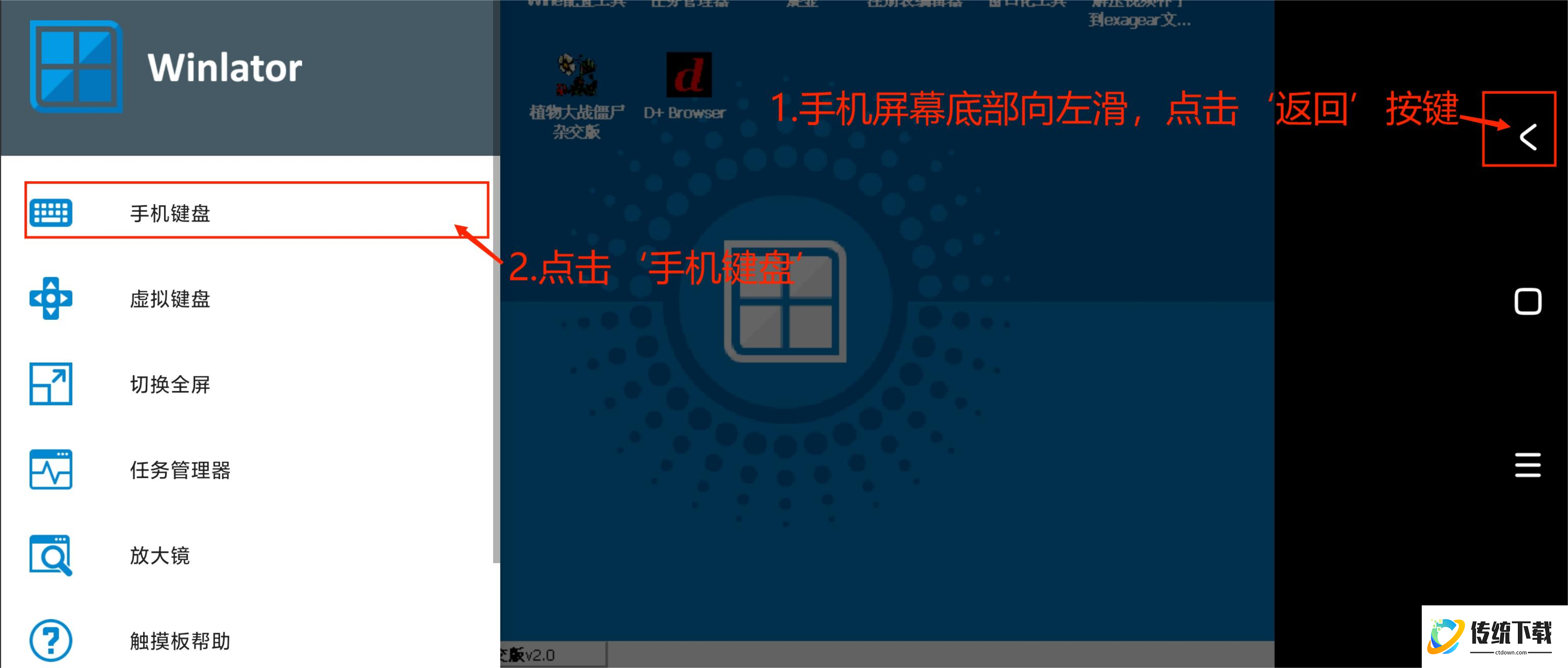 15.手机屏幕底部向左滑,点击‘返回’按键后再点击‘手机键盘’