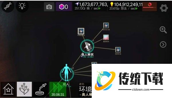 第八个成就五分钟以下到奇点,后面的那一个成就在两分钟以内到达奇点游戏特色1、一张简单但具有科幻风格的低多边形图片,通过放置和单击可以完成生物的进化。