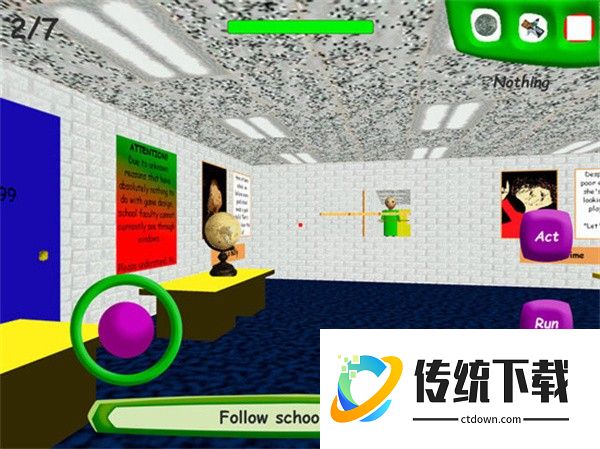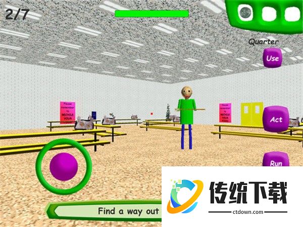 3、游戏中我们需要帮助巴尔迪在避开巴迪的同时收集满7本笔记本,然后逃出学校。