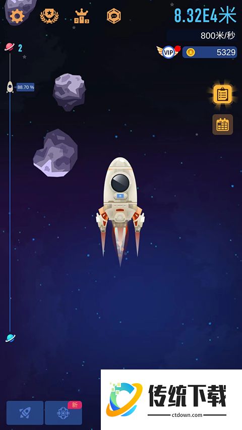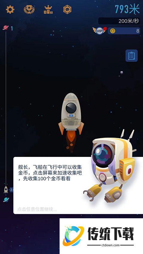 在飞行的过程中,玩家可以收集到各种资源,如星星和暗物质;这些资源不仅可以用来升级飞船,还可以解锁新的功能和道具,丰富游戏体验。