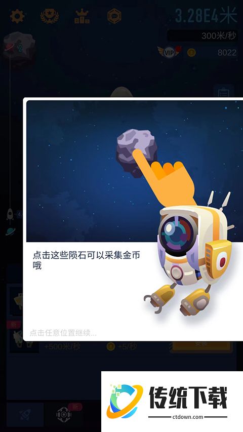 6、飞行途中会有不同大小的陨石,我们可以点击陨石来采集金币,
