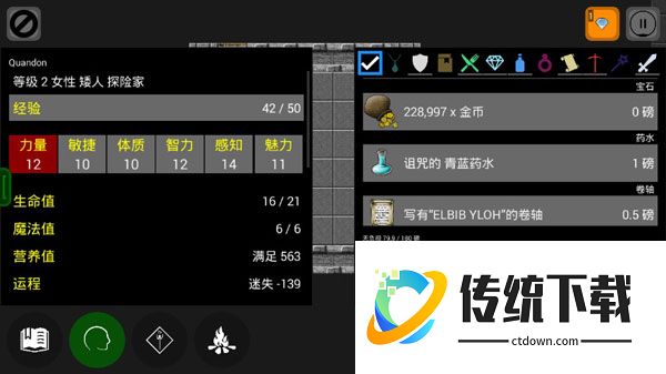 金币没有重量,所以想带多少都可以。金币可以在商人处购买各种道具,也可以在牧师那里捐献,获得运程。