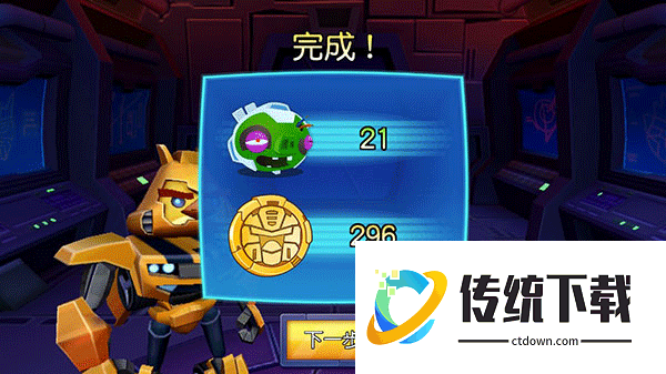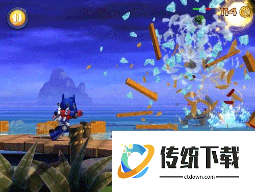 1、《愤怒的小鸟:变形金刚AngryBirdsTransformers》操作与玩法并不困难,说是笔者接触怒鸟系列中最简单的一部也不为过。游戏开始后小鸟自动奔跑玩家仅需点击猪塔发动射击,点击右下角的变身躲避倒塌的路障。如此简单的游戏方式还真不像是Rovio的作风。小鸟的对手还是熟悉的绿猪熟悉的猪塔,但攻击方式却不再具有技术性,点哪射哪的无脑射击形式,让笔者觉得本作再也不是一款老少皆宜的游戏了,任何一个年满14岁的玩家恐怕都会感觉到单调与乏味,这样的游戏玩法似乎哄哄家里的熊孩子,都还要担心射击题材的血腥暴力因素影响到孩子。